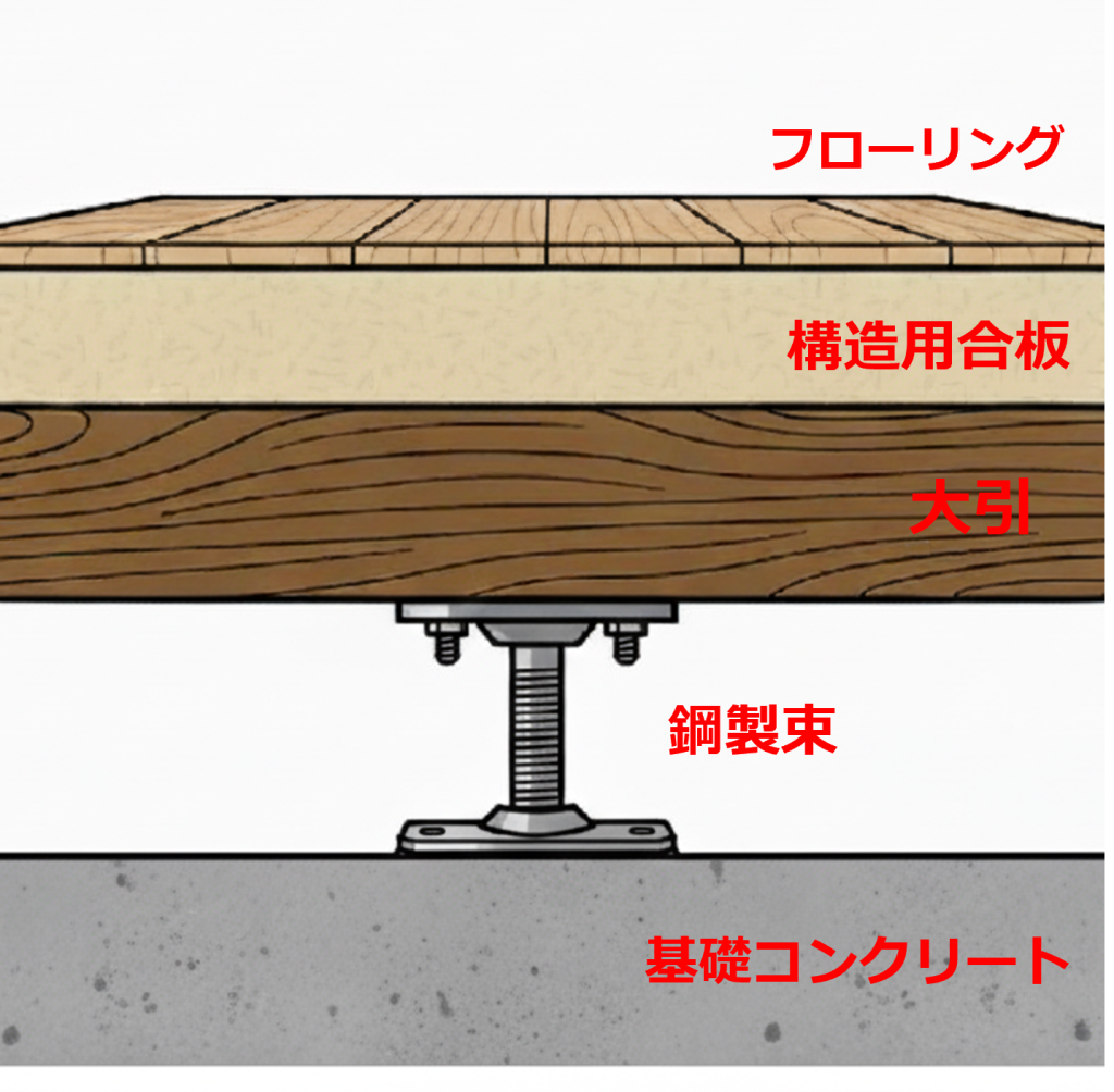 鋼製束(こうせいつか):コンクリートの基礎から大引を