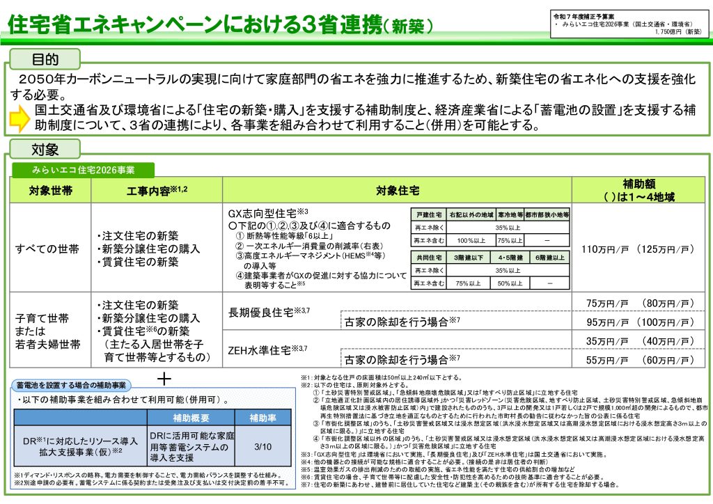 「みらいエコ住宅2026事業」が令和7年11月28日に閣議決定されました。