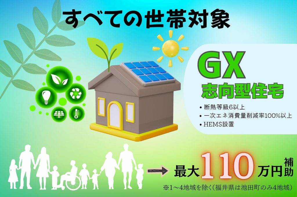 すべての世帯が対象となるのは、特に高い省エネ性能を有する「GX志向型住宅」を新築・購入する場合です。