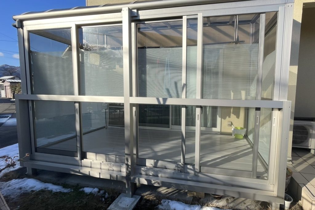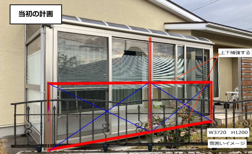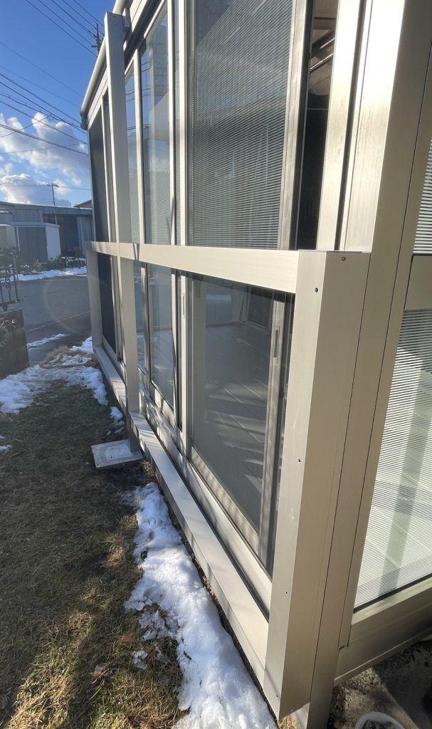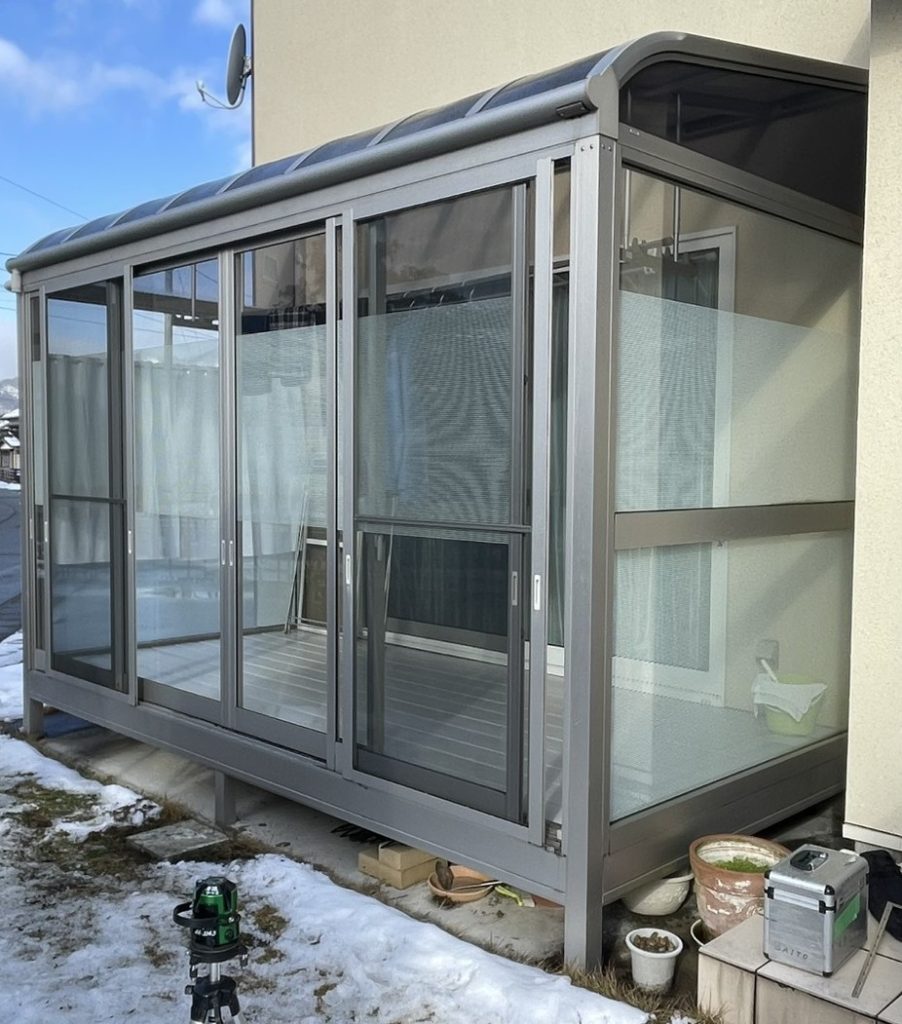 今回のご依頼は、お庭のサンルームへの雪囲い対策です。